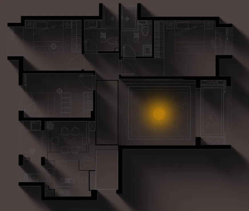 Chúng ta có thể sử dụng các loại đèn khác nhau để tính toán lớp phủ. Ví dụ: chúng ta có thể bố trí đèn sân khấu và dải ánh sáng trong không gian.