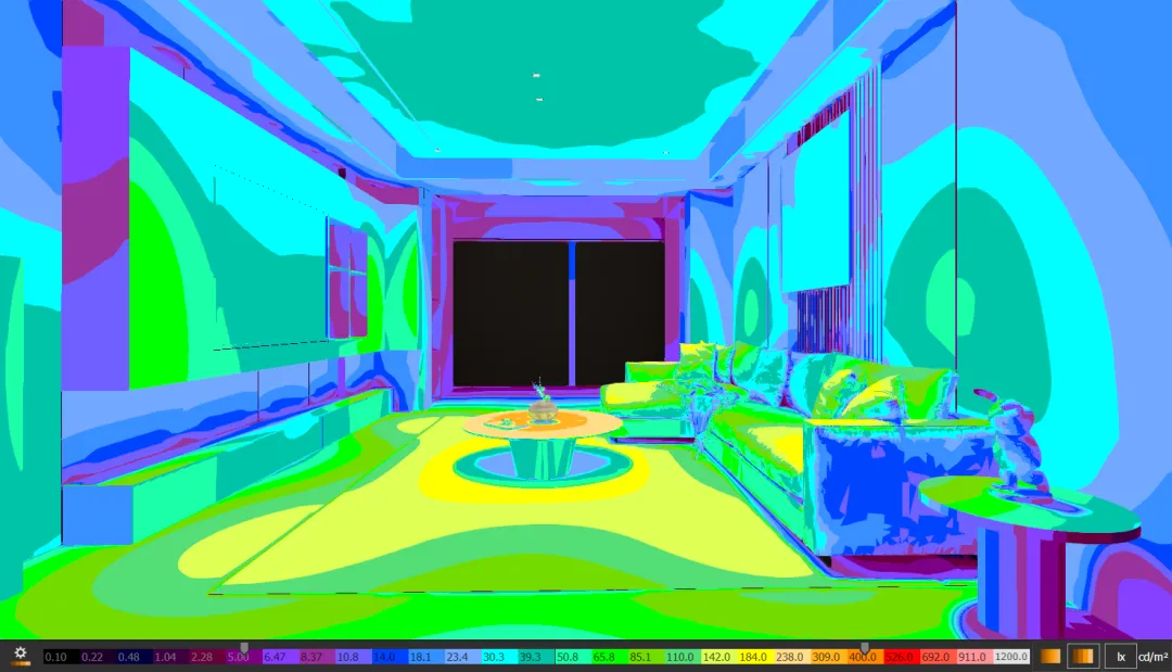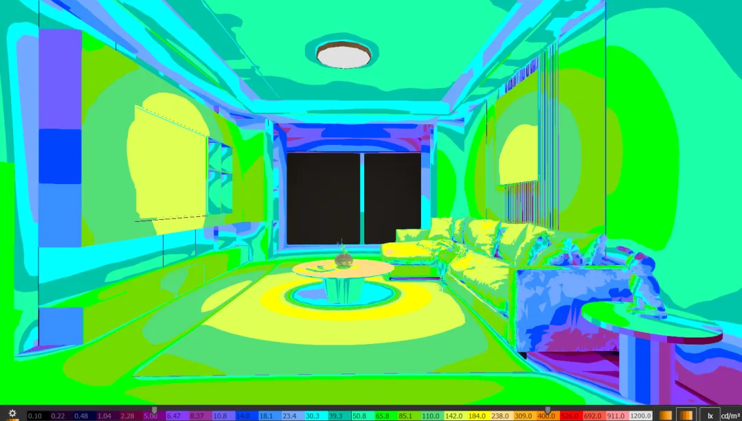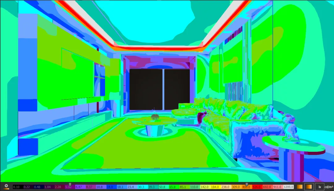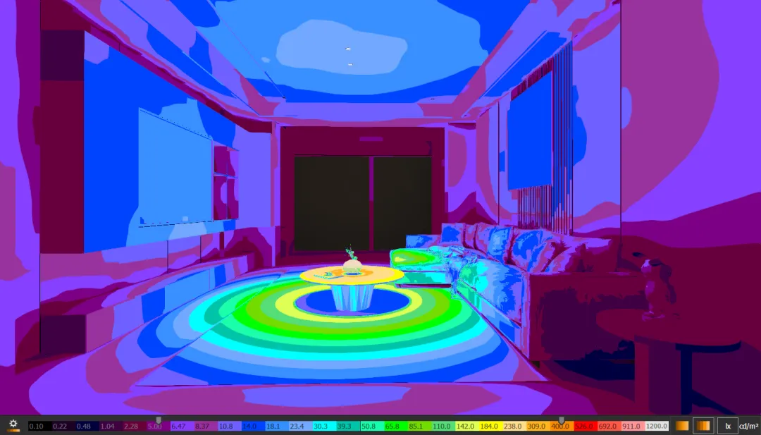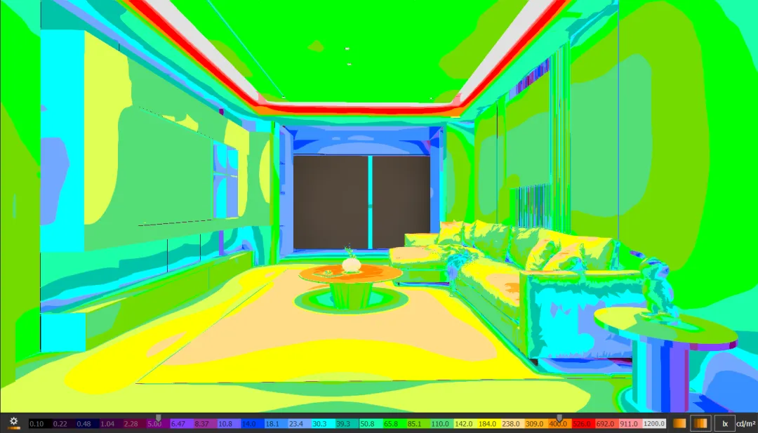 Vì lo đồ đạc sẽ che mất bề mặt tính toán nên tôi đã nâng bề mặt tính toán lên cao ngang mặt bàn cà phê và ghế sofa là 0,4m, tính ra là 150lx. Nó khá chính xác.