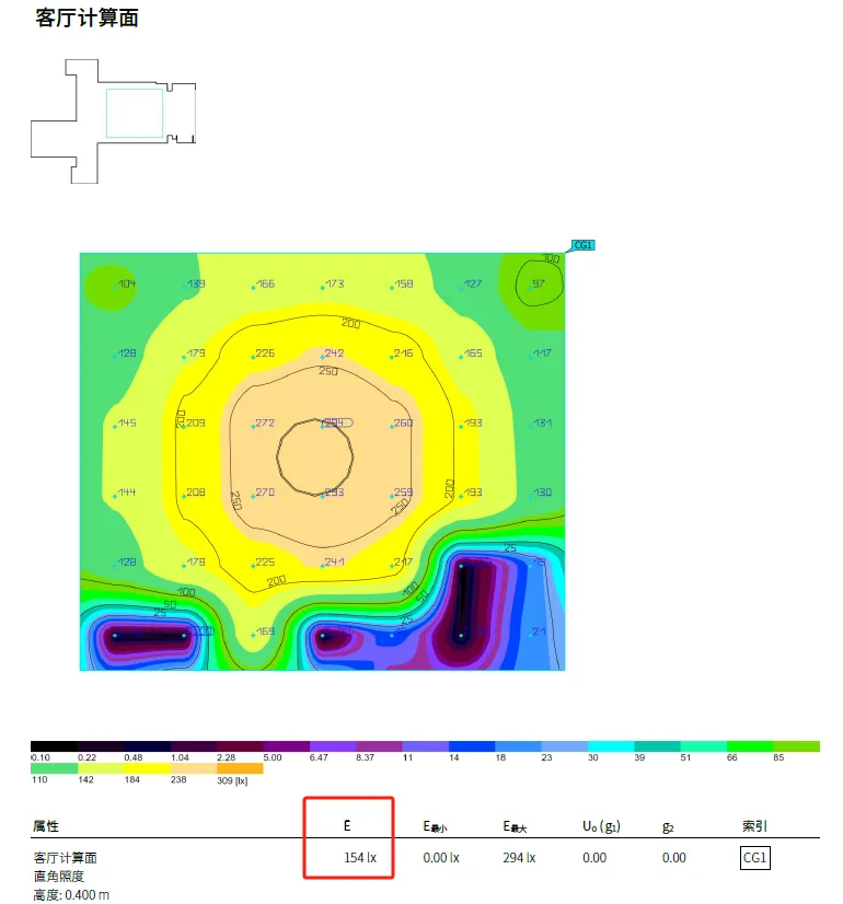 Kết quả tính toán của chế độ này tương đối cao, trung bình gần 300lx, độ chiếu sáng ở giữa cao hơn. Chế độ này có thể dùng để đọc báo.