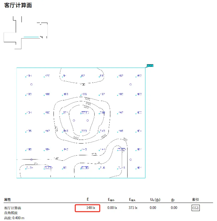 Độ chiếu sáng tính toán của mặt phẳng 0,4m là 148lx.